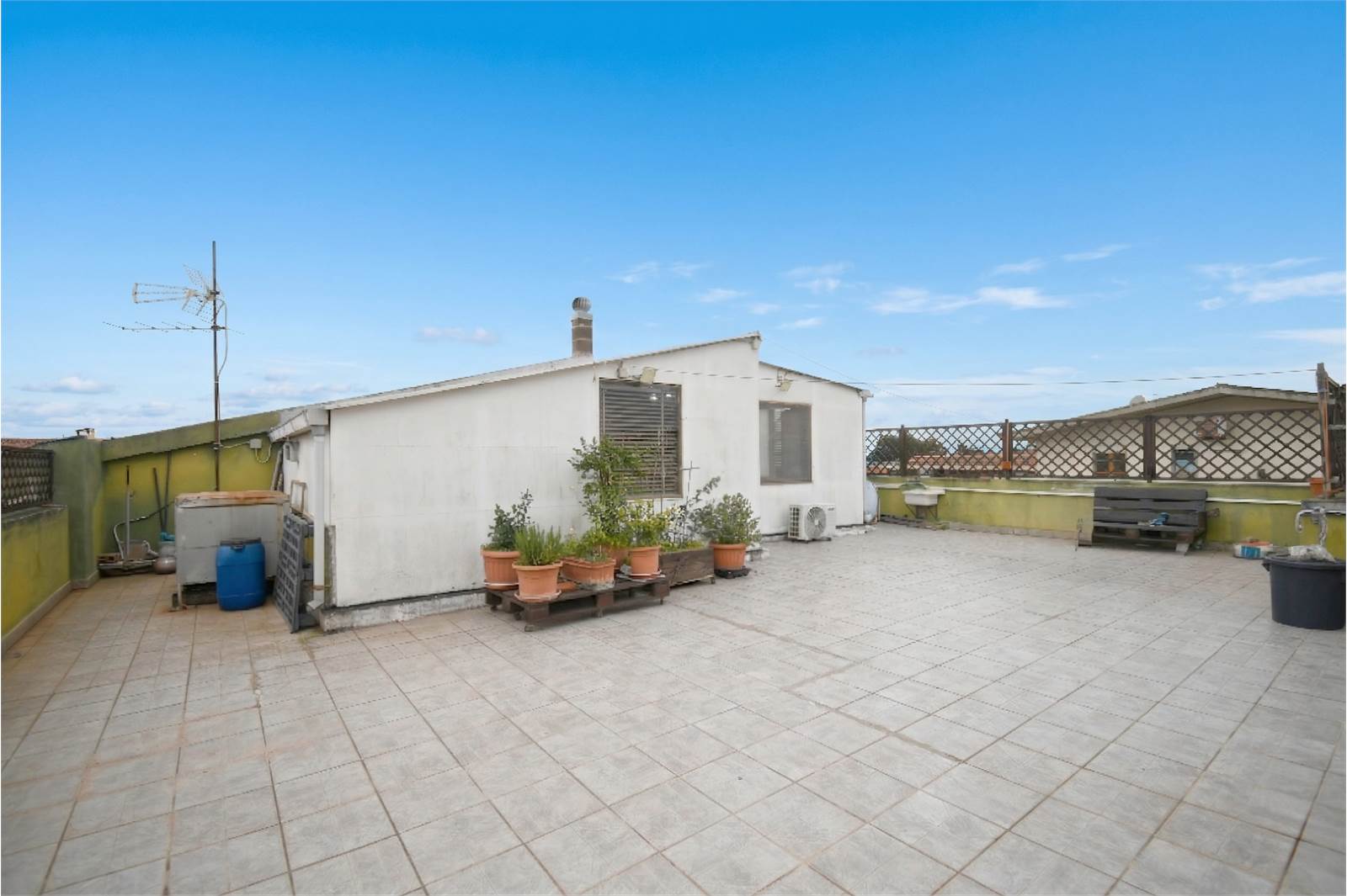 L'immobile situato al secondo piano ed è composto da ingresso su disimpegno, ampio soggiorno, cucina abitabile, andito, due camere singole, una camera matrimoniale, un bagno, tre balconi, infine completano la proprietà un posto auto e la terrazza sovrastante con accesso direttamente dal vano scala.