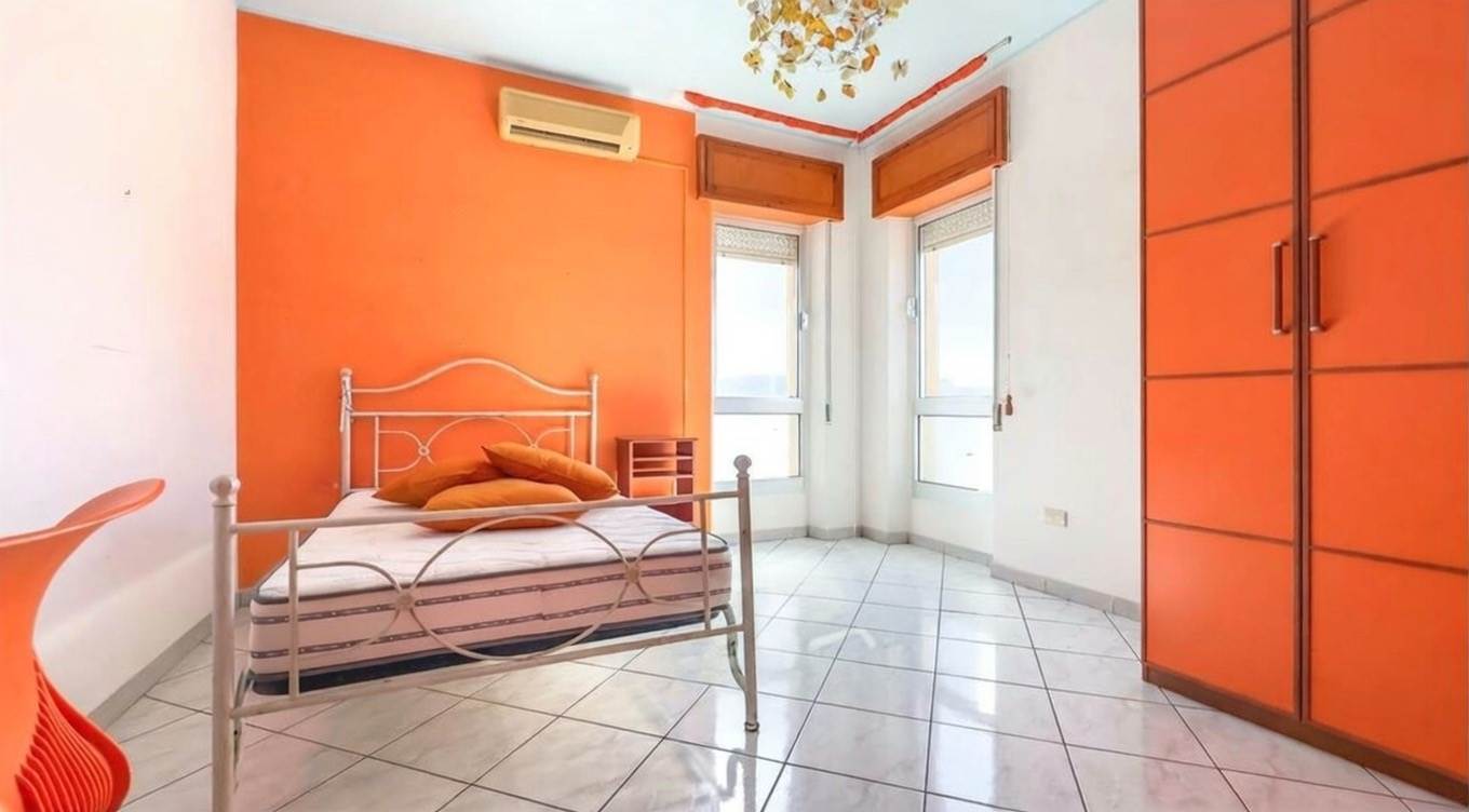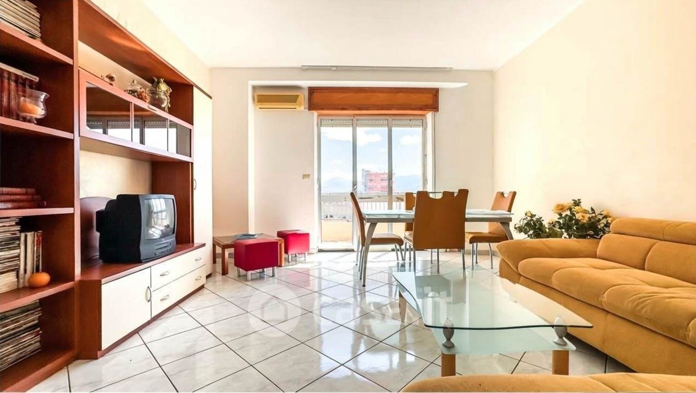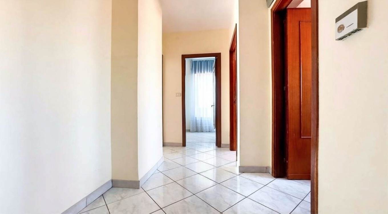 L'appartamento, si compone internamente di ingresso, spazioso soggiorno con balcone che si affaccia sulla piazza, cucina abitabile anch'essa con balcone esclusivo, disimpegno, due camere da letto entrambe matrimoniali, bagno di servizio con zona lavanderia, e bagno padronale con vasca.