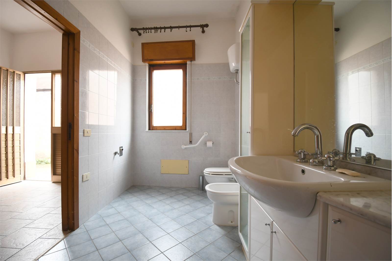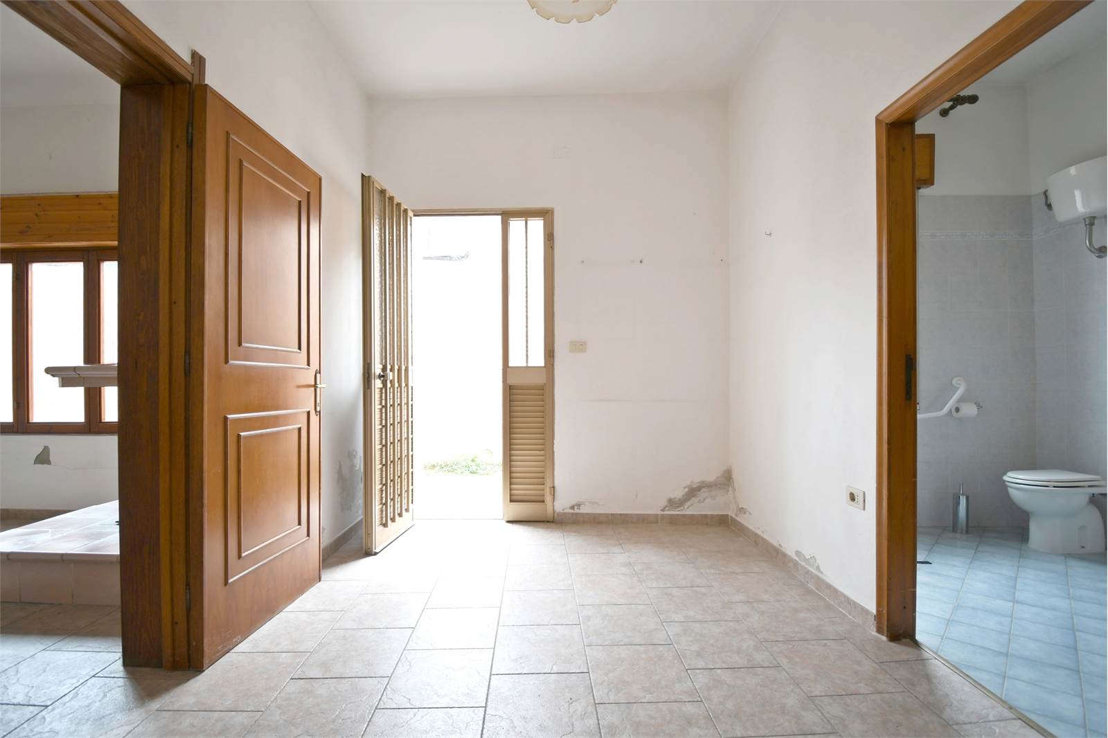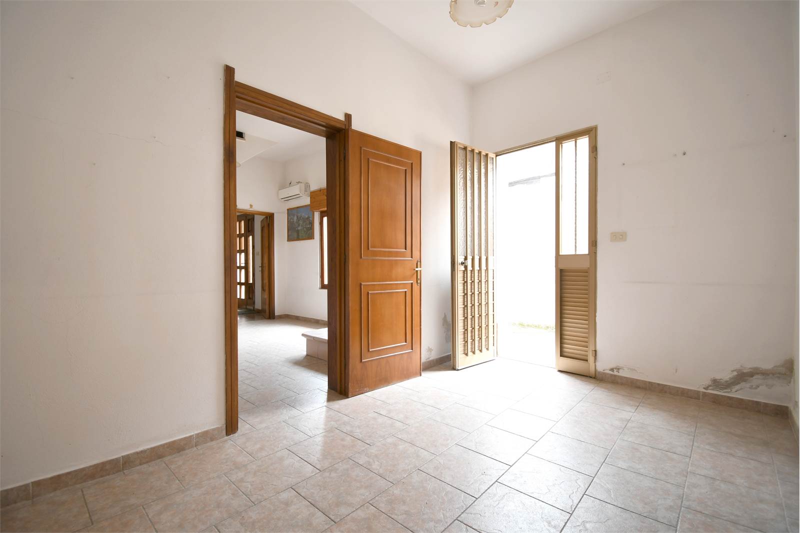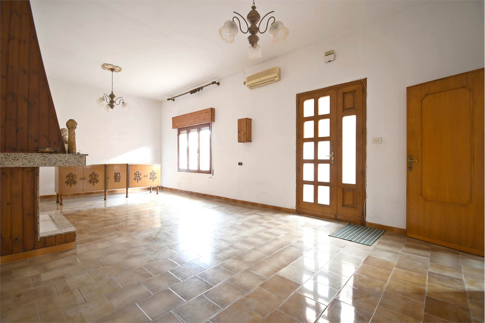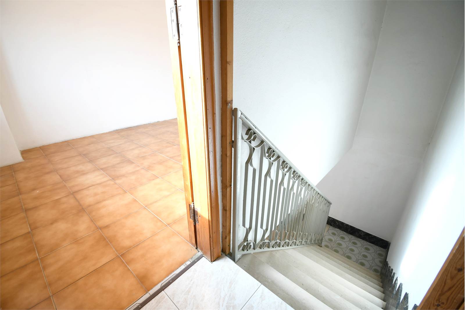Accesso da cancello carraio sul cortile, ingresso su ampio soggiorno con angolo cottura, zona tinello dove troviamo le scale per l'accesso al piano superiore, disimpegno ampio e bagno con box doccia. Al primo piano troviamo tre camere da letto con balcone.