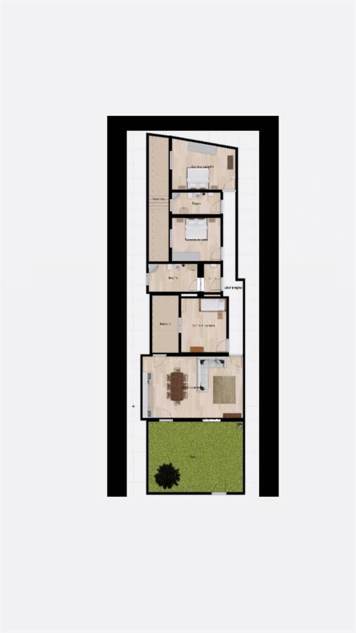 L'immobile è composto da: ingresso, Ampio Giardino, Soggiorno Pranzo con Angolo cottura, Disimpegno, due Camere Matrimoniali ed una Singola, due Bagni con doccia e Ampie Verande.