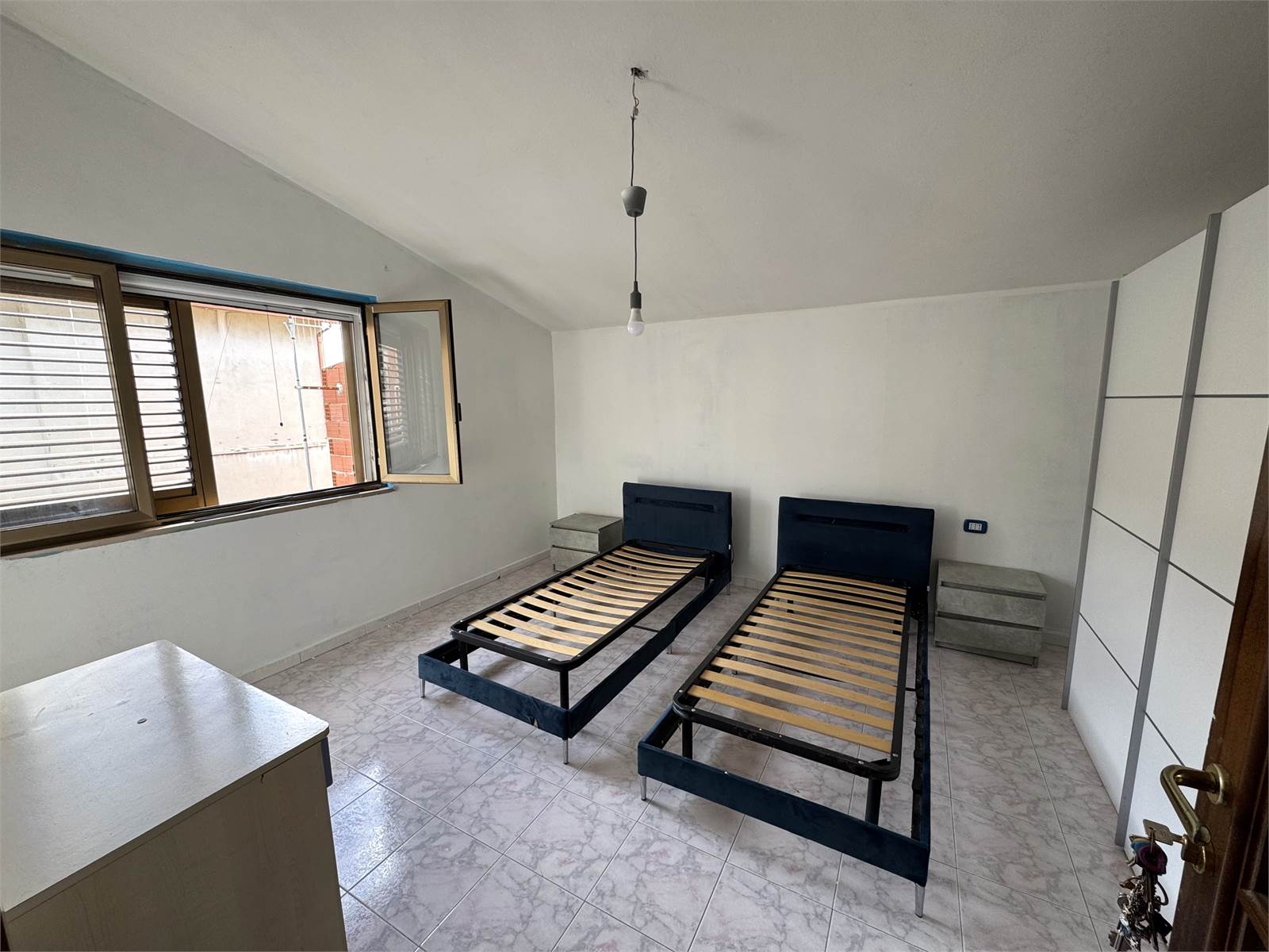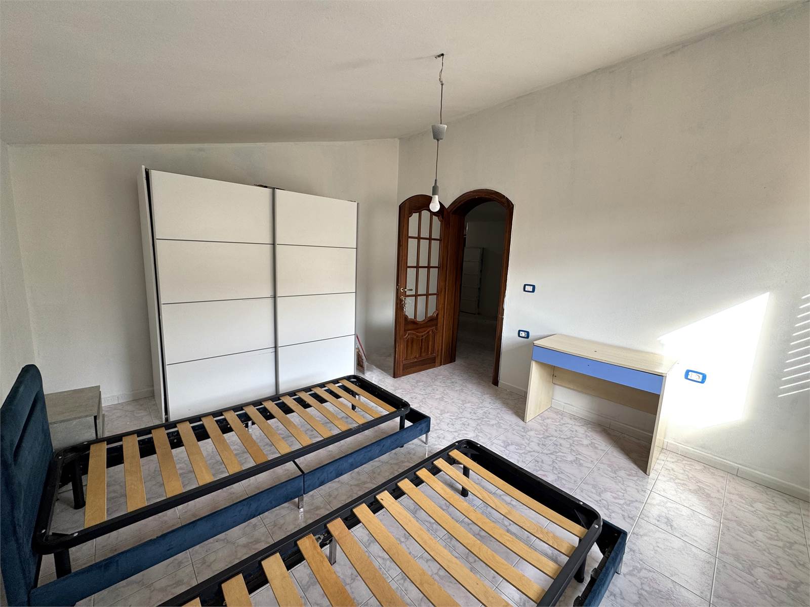 L'unità si compone di un luminoso living con cucina abitabile in configurazione semi open space, una camera matrimoniale, due camere singole e un bagno ristrutturato.