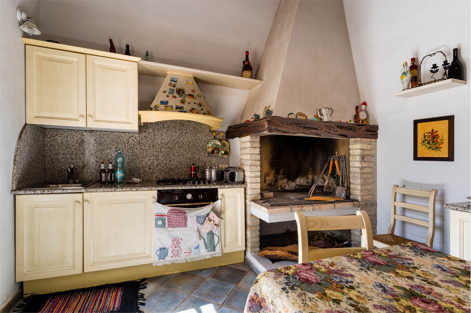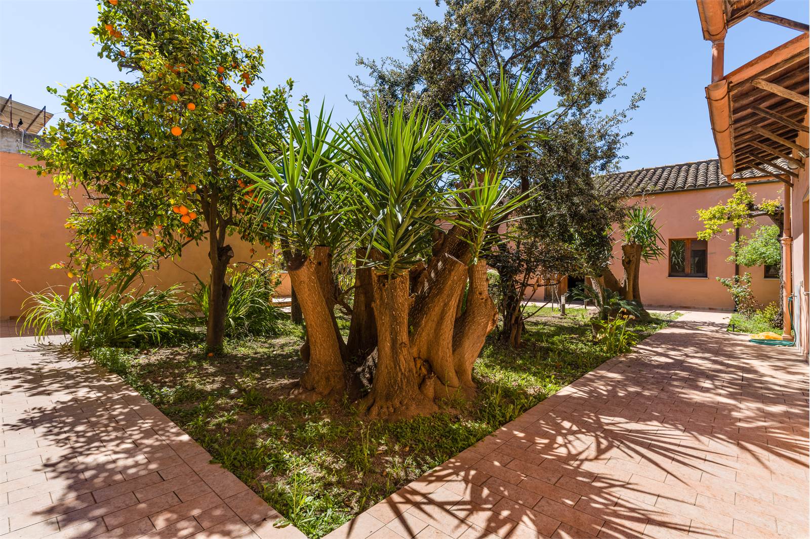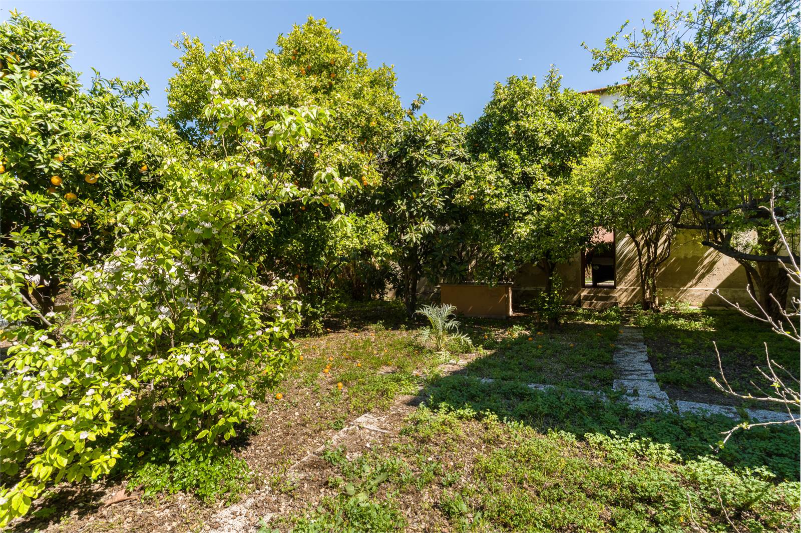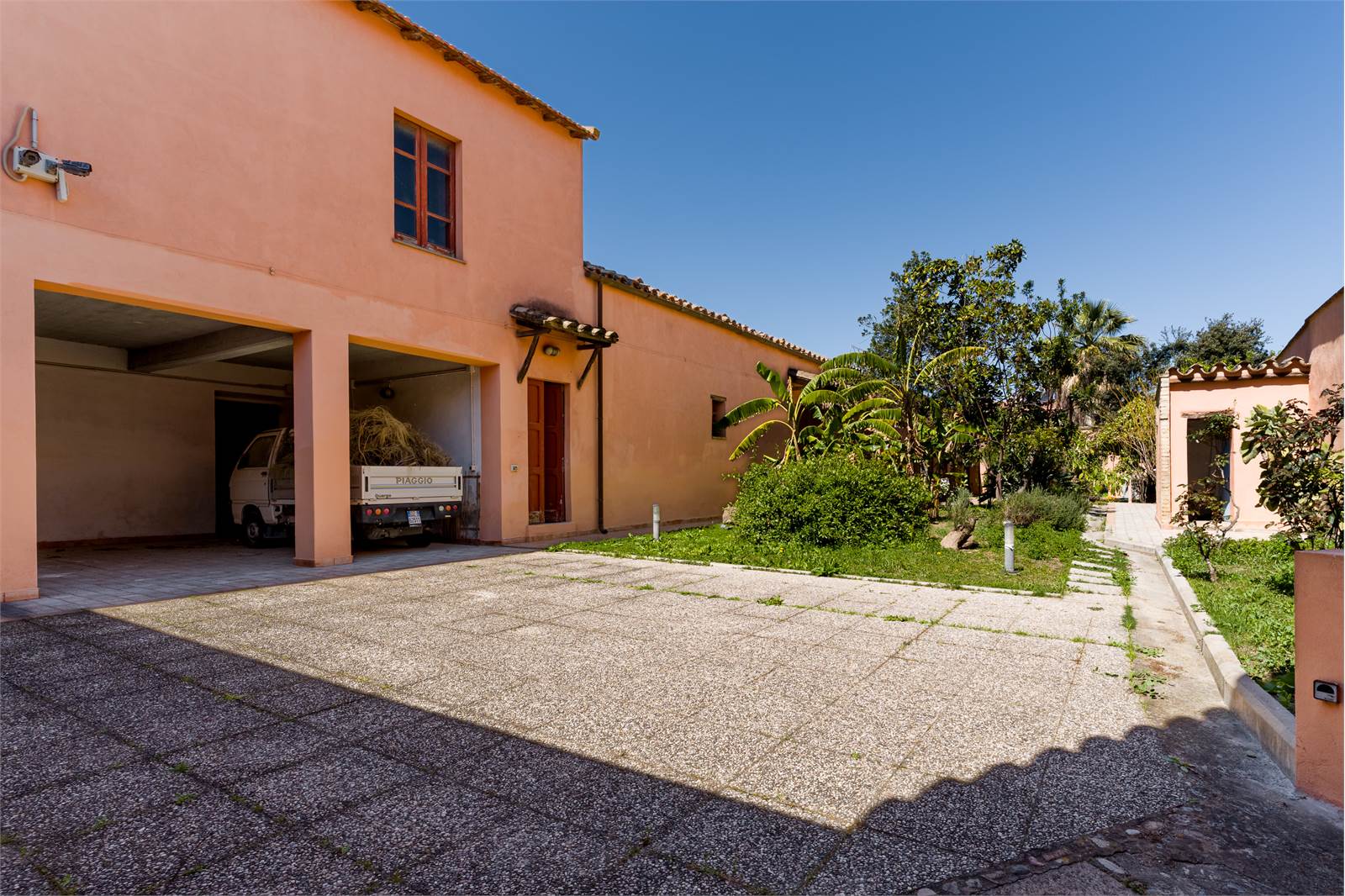 Al Piano terra troviamo un ampio cortile centrale alberato, zona abitativa composta da ingresso, tre camere, cucina abitabile, bagno, loggiato chiuso, un ulteriore vano con foro sardo e servizio.