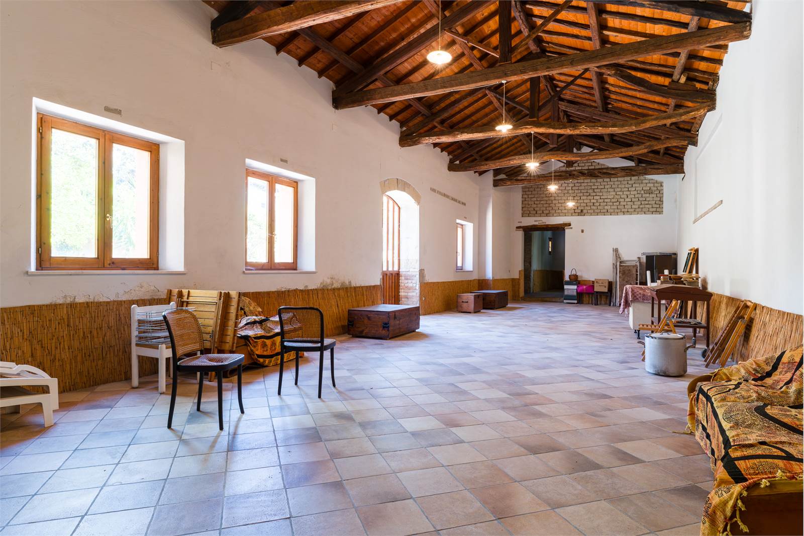 Completano il piano una legnaia, locale tecnico, locali di sgombero e un grande magazzino con altezze oltre i 5 metri e mezzo.